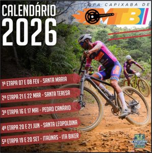 Santa Maria de Jetibá: Pelo 3º ano consecutivo, Santa Maria de Jetibá será o palco de estreia da COCMTB em 2026, o já tradicional XCO do Horto promete mais uma vez encantar a todos que participarem desse grande evento, a pista passará por pequenas melhorias que prometem deixa-la ainda mais prazerosa na pilotagem, a expectativa é recorde de participantes nessa etapa se aprovada para calendário nacional. As inscrições para essa prova já estão abertas confira todas as informações no link abaixo.